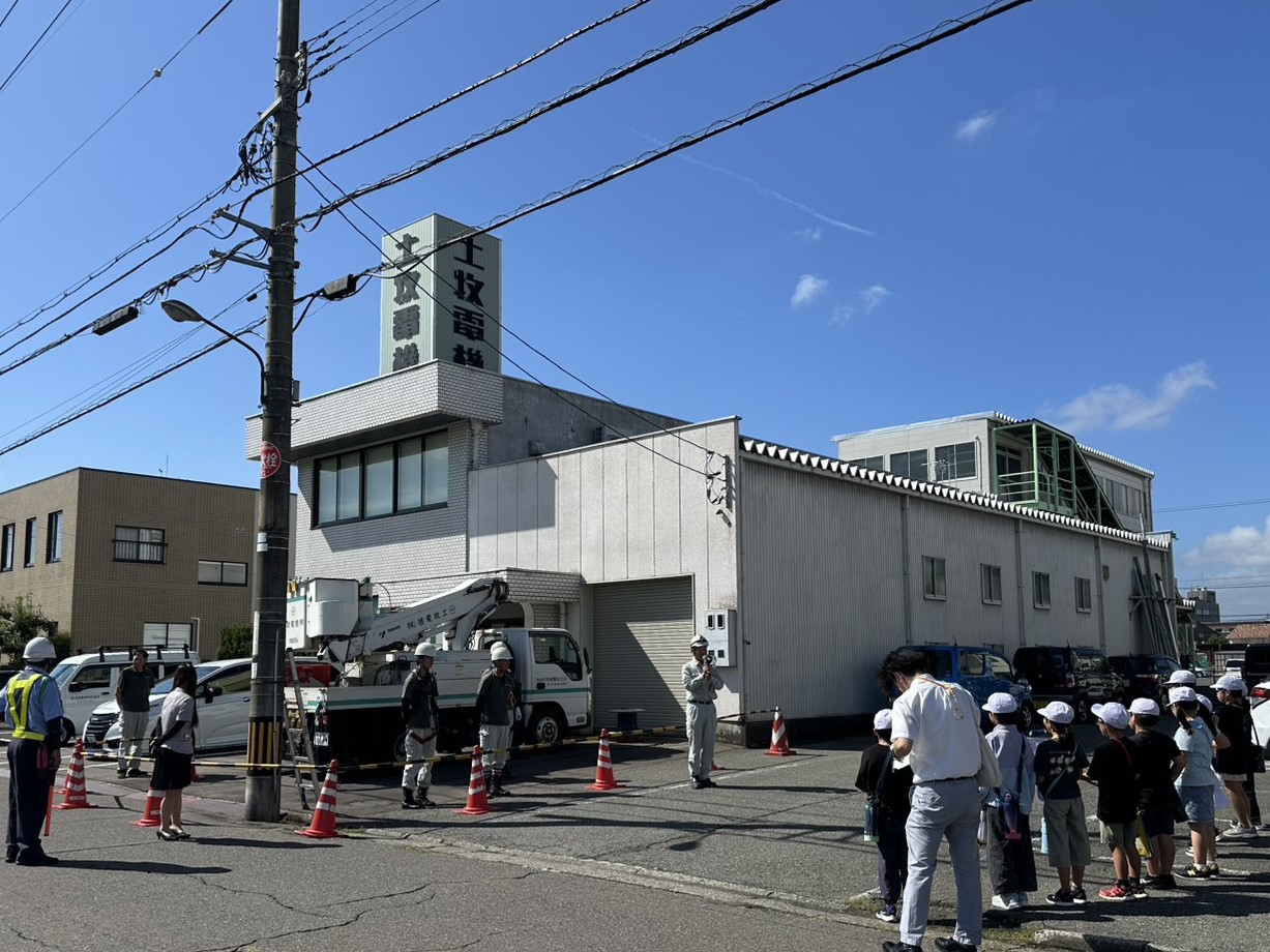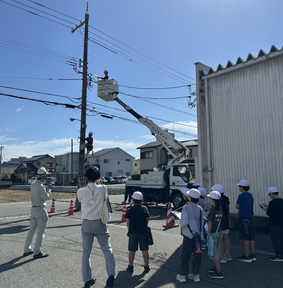 高所作業車での作業を見たり、電線に触ってみたりと、興味を持って見学してくれていたようでした。